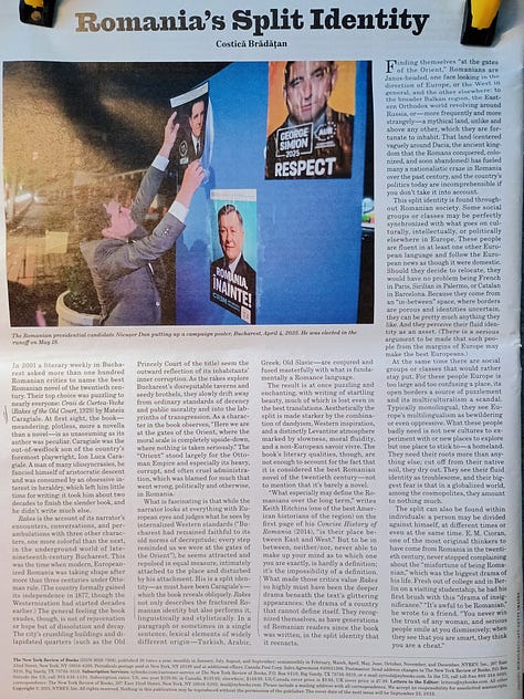 Vabbe’, dopo questo lungo preambolo vorrete infine sapere anche il titolo del pezzo di Costică Brădăţan uscito in agosto sulla «New York Review of Books» e pubblicato ieri sul sito di «Internazionale», nella mia traduzione, no? Eccolo: “L’identità divisa della Romania”.